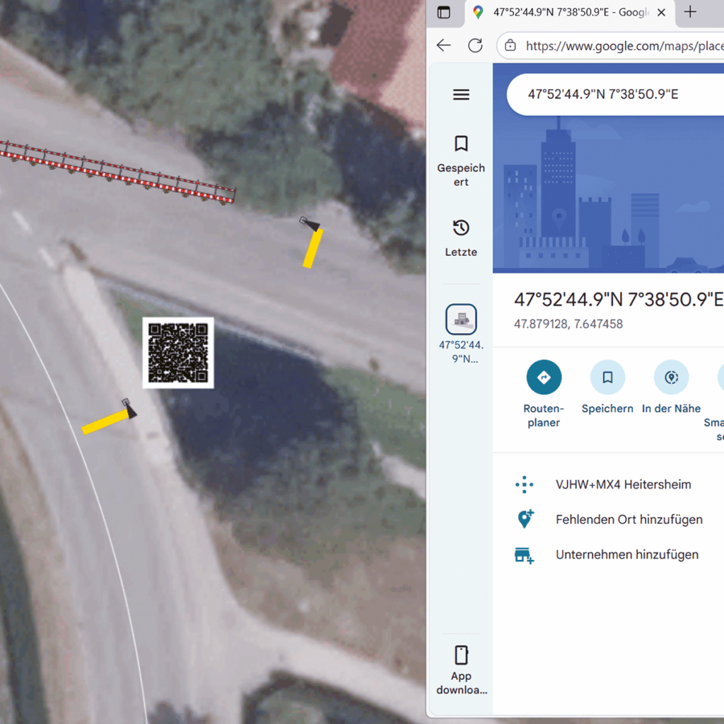 You may know the problem: a detour sign gets installed at the wrong intersection – with serious consequences. With INFRASIGN, you simply place a QR code next to the sign in the plan. Field staff can then scan it with a smartphone and are guided to the exact location for setup and removal.