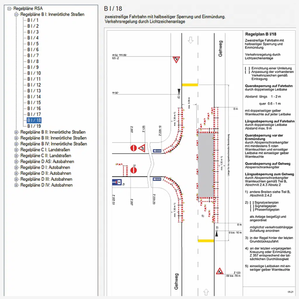 INFRASIGN automatically integrates the German RSA and ASR guidelines into traffic sign planning. This ensures compliance from the very beginning, saving valuable time in approval processes and eliminating costly corrections.